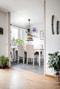 På husets gavel finns den väderskyddade entrén som leder in i en central och rymlig hall med plats för kläder och skor.