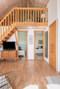 Inifrån huset har ni även här utsikt över viken och trädgården. Här möts ni av ljusa material och färger samt en härlig takhöjd. Huset inrymmer två sovrum, ett loft, allrum, kök och badrum. Allrummet har högt i tak och plats för en soffgrupp eller matmöbel i nära anslutning till köket samt ett burspråk. Här väljer ni själva hur ni vill inreda, men säljaren har i detta fall valt att inreda burspråket med köksmöbel så att man kan avnjuta middagen med utsikt över viken. I allrummet finner ni även en öppen spis som är fullt fungerande.