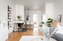 Vidare in i bostaden hamnar ni i köket. Modernt kök i stilren inredning där de vita luckorna smälter samman fint med den mörka bänkskivan och vita kaklet som följer väggen ovan. Perfekt kök för den matintresserade med bra plats för förvaring samt arbetsyta. Intill fönstret ges en naturlig plats åt matbord. Den maskinella utrustningen består av spis, spisfläkt, ugn, diskmaskin samt kyl/frys.