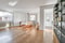 Det rymliga vardagsrummet har fiskbensparkett och nymålade släta väggar. Detta rum kan gå att dela av om man behöver fler sovrum.