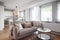 Den andra delen av rummet är som gjord för en soffhörna med tillhörande möblemang. Medan du förbereder kvällens meny till dina vänner kan du fortfarande vara social med de som sjunkit ner i soffan. Öppna upp dörren till uteplatsen och släpp in den friska luften och njut av lugnet på den grönskande innergården.