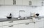 Tidlöst kök med ljusa snickerier och grå bänkskiva som snyggt bryter av med den vita kaklet ovan bänk. Maskinellt utrustat med hel kyl och frys, inbyggd mikro, spishäll, ugn, fläkt och diskmaskin. Spotlights som skapar en exklusiv känsla och två diskhoar underlättar i vardagen. Plats finns för matbord intill fönsterpartiet samt utgången till uteplatsen på framsidan. Ljusa väggar och parkett på golv.