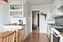 Kök: Stort kök med plats för matbord. Vita luckor och bänkskiva i trä. Gott om arbetsyta och förvaring. Fristående spis från Electrolux, grå kyl/frys från Samsung samt rostfri diskmaskin från Bosch.