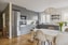 Hallen öppnar upp sig till såväl vardagsrum som kök. Denna öppna planlösningen är fantastisk. Här har vi fönster i två väderstreck vilket gör att ljusinsläppet är underbart, lägg därtill takhöjden! Köket är ståtligt, vackert i en behaglig grå ton med vackra handtag och marmorskivan höjer intrycket ett snäpp till.