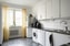 Det stora köket har laminat på golvet och vita väggar som ger en ljus atmosfär. De äldre vita köksluckorna kombineras med en laminatbänkskiva och vitt kakel ovanför, vilket ger en klassisk och funktionell känsla. Köket är fullt utrustat med kyl/frys, diskmaskin, spis/ugn och fläkt. Observera att tvättmaskinen inte ingår i överlåtelsen.