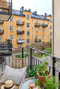 Balkong med kvällssol och smakfulla renoveringar som kombinerats med sekelskiftescharm