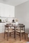 Köket är ifrån från kvalitetstämplade Myresjö och i stilrent utförande med modern köksinredning där vita fronter, en bänksskiva av grå laminat och vitt kakel sätter sin prägel. Maskinell utrustning består av diskmaskin, fläkt, ugn med spishäll samt kombinerad kyl och frys.