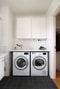 Det ljusa köket består av en god arbetsyta som kläs av en bänkskiva i granit och det finns även gott om förvaring. Köket är utrustat med dubbel kyl och frys, induktionshäll och ugn samt diskmaskin. Det finns även stor plats för ett ordentligt matbord med plats för upp till 6 personer. Köket möts även av ett stort fönster som ger ett härligt ljusinsläpp och en känsla av luftighet.