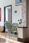 Kök - Innanför halvan ligger köket som går i stilrena val med vita skåpsluckor med rostfria beslag, vitt fasat kakel samt grå bänkskiva. Köket har vitvaror enligt följande: induktionshäll (Siemens 2015), ugn och kolfilterfläkt (Gorenje 2015), kyl/frys samt diskmaskin som är utbytt 2025. Plats för matbord för 3-4 personer. Furugolvet är lagt 2025 och väggarna är målade i ljusgrön nyans.