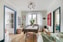 Matsal / Vardagsrum / Halva - Genom två fina pardörrar kommer vi in i matsalen som också har fiskbensparkett, fina detaljer och fint ljusflöde. Plats för stort matsalsbord. En stor halva utgör idag vardagsrum och bibliotek med plats för soffa. Vacker lamprosett och stuckatur.