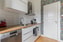 Stilrent och praktiskt kök med goda förvaringsmöjligheter via vita skåpluckor. Goda arbets- samt avlastningsytor med ovansittande vitt kakel. Maskinell utrustning i form av häll, köksfläkt, inbyggnadsmikro med varmluft, diskmaskin samt kyl/frys. I direkt anslutning till köket återfinns det välplanerade badrummet med våtrumstapet och våtrumsmatta på golv. I övrigt utrustat med dusch, handfat, handdukstork samt WC. Badrummet är förberett för tvättmaskin.