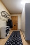 Välkomnande och rymlig hall med goda förvaringsmöjligheter i fyra garderober samt hatthylla och plats för skoförvaring. Tapetserade väggar och praktisk plastmatta på golvet ger en funktionell och lättskött entré.