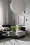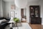 Vardagsrummet är ljust, luftigt och lätt att trivas i. Hörnläget ger ett generöst ljusinsläpp och en härlig känsla av rymd. Här finns plats för både soffgrupp och matbord. Från fönstren blickar du ut över torgets grönska – en levande tavla som skiftar med årstiderna. De ljusgrå väggarna och det vackra trägolvet återfinns här.