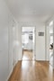 - HALL: Den här rymliga hallen erbjuder en perfekt kombination av funktion och stil. Vita väggar och ett vackert parkettgolv skapar en tidlös och fräsch atmosfär som passar alla inredningsstilar. Här finns gott om plats för avhängning av kläder och skor direkt vid entrén, vilket gör det enkelt att hålla ordning. En praktisk garderob ger extra förvaringsmöjligheter för jackor, väskor och annat som behöver finnas nära till hands. Hallen är inte bara en plats att passera igenom, utan den sätter tonen för hela hemmet – ljus, luftig och inbjudande. Här känns det alltid skönt att kliva in!