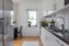 Kök och vardagsrum möts i en öppen planlösning vilket ger en social känsla samt plats för en trivsam matplats. Köket är fullutrustat med kvalitativa vitvaror som består av spishäll, spisfläkt, ugn, diskmaskin, inbyggd mikrovågsugn samt kyl och frys i fullhöjd. Den maskinella utrustningen går i rostfritt utförande. Den mörka bänkskivan är tacksam och blir en fin kontrast mot den i övrigt vita köksinredningen. Köket har gott om förvaringslösningar och arbetsyta. Framför fönsterpartiet finns även plats för ett matbord.