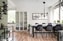 Den halvöppna planlösningen mot vardagsrummet bidrar till en social samvaro och bidrar till en plats där familj & vänner kan samlas. Här ges det plats för en soffgrupp med tillhörande möblemang samt ett större matbord i anslutning mot köket. Väggarna är vitmålade med en fondvägg i en behaglig grön ton. som går hand i hand med utsidan där man omfamnas av träd och grönska. Det generösa fönsterpartiet släpper in rikligt med ljus och erbjuder en trevlig sikt mot den lummiga innergården.