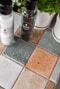Badrum 2021: Wc, handfat med skåp under, dusch med vikbar glasvägg, kakel och klinkers.