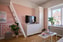 Det rymliga och lättmöblerade rummet erbjuder plats för både soffgrupp, matbord och garderober med inbyggd kyl. Här finns idag ett praktiskt sovloft med plats för 120 cm säng som går över halldelen, vilket frigör yta och skapar en tydlig rumsindelning.