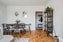 Vardagsrummet är luftigt och socialt med generöst ljusinsläpp. Här finns gott om plats för både soffgrupp och matplats. Från rummet nås även bostadens balkong – en naturlig förlängning av vardagsrummet under årets varmare månader.
