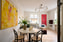 Bostaden genomsyras av smakfulla materialval, bevarade originaldetaljer och en planlösning som är både funktionell och social.