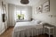 Det större sovrummet är rymligt nog för en dubbelsäng. Den lugna väggfärgen tillsammans med fiskbensparketten skapar en varm och ombonad känsla.