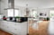 Huset är genomtänkt i varje detalj och bjuder på en öppen, social planlösning med generösa ytor för umgänge. På entréplan möts du av ett stilrent kök med vita släta luckor och svart stenskiva – en elegant kombination som harmonierar med hemmets övriga design. Vardagsrummet flödar i ljus tack vare stora fönsterpartier i två väderstreck, och rymmer både matplats och soffgrupp i en luftig och inbjudande miljö.