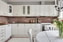 Till höger om entrén ligger köket, ett stilrent vitt IKEA-kök med stänkskydd i tegel ovan den svart/grå bänkskivan. Den maskinella utrustningen består av ugn, kyl och frys från Siemens, fläkt samt diskmaskin. Här finns en matplats för fyra personer med utsikt mot gatan. Klinkergolv och vita tapeter även här.