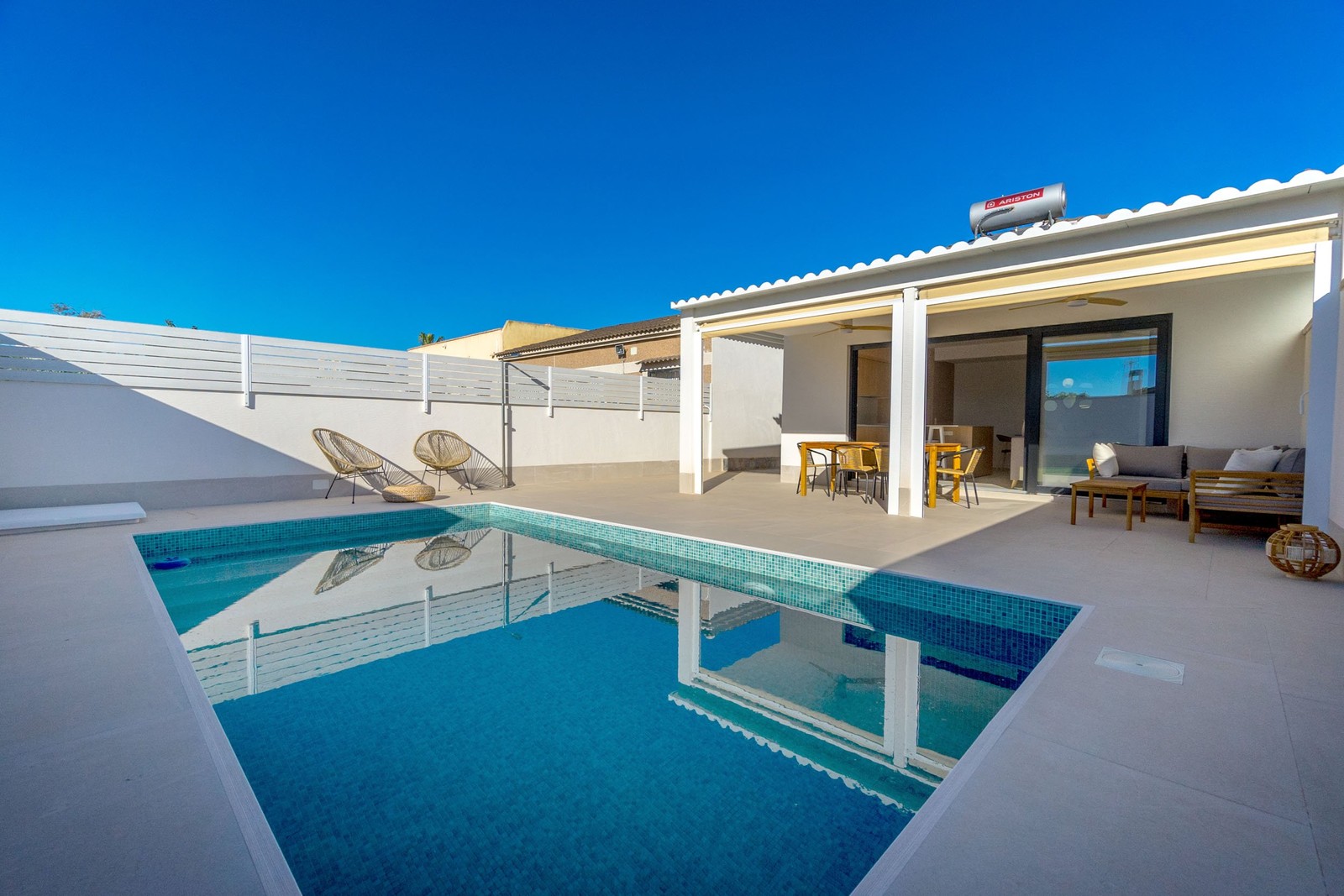 Modern, newly renovated detached villa with three bedrooms, two bathrooms, private pool, and on-plot parking in charming El Chaparral.