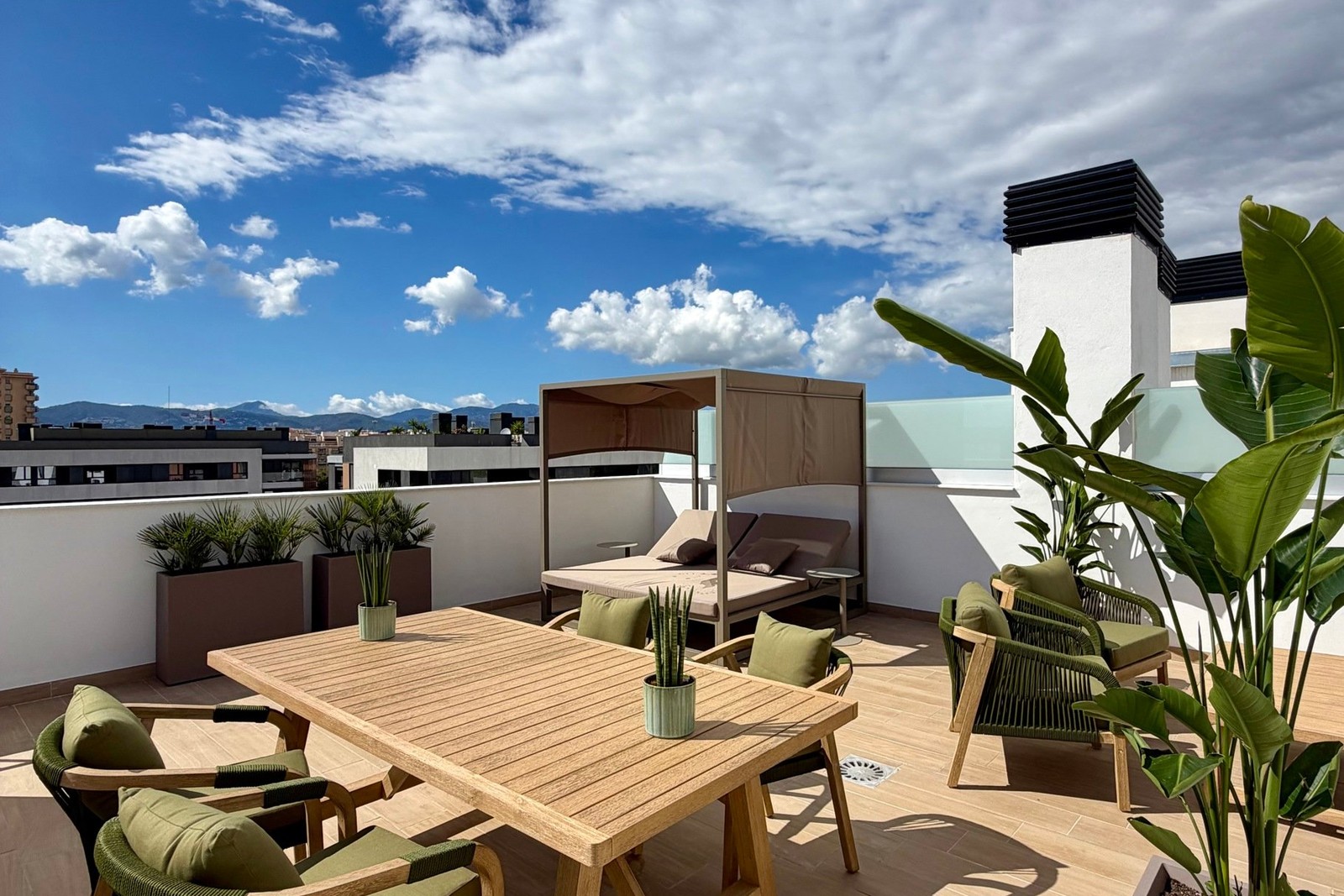 The Penthouse offers three bedrooms, including a comfortable master bedroom with its own bathroom en suite. There are also two further bedrooms and an additional bathroom. The well-planned outdoor areas impress with a private roof terrace of approximately 48 m², perfect for relaxation, sunny days and atmospheric sunsets with views that stretch from Palma all the way to the sea.
