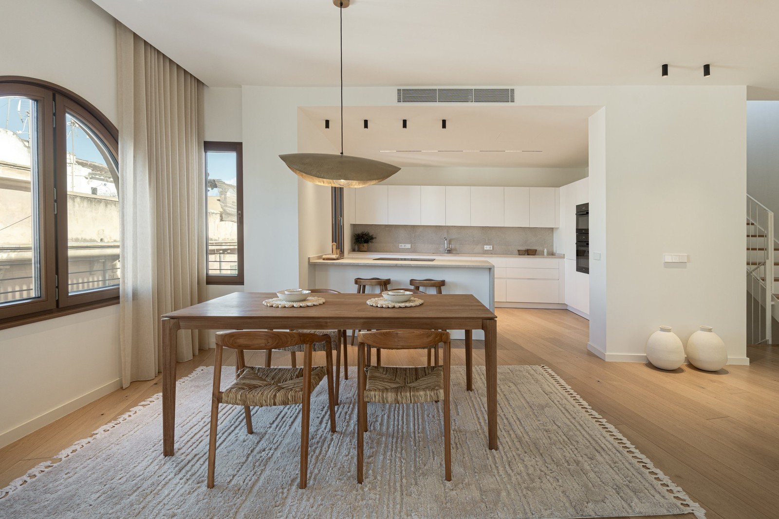 Welcome to this property where modern elegance meets Mediterranean flair. This exclusive 207 sqm duplex extends over two floors and offers an atmosphere that breathes light, space and style. When you step inside, you are greeted by an open plan living and dining area where the living room and dining area merge into a social space, perfect for both relaxed weeknights and festive dinners. The beautiful windows let in a generous flow of daylight and create a warm and inviting feeling.