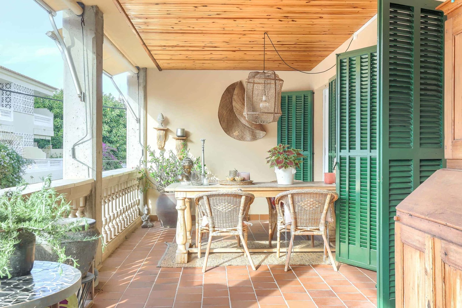 The layout is thoughtfully designed: a welcoming hallway connects the kitchen and living area, with one bedroom and the kitchen overlooking a peaceful courtyard. The living room and two additional bedrooms open directly onto the terrace, flooding the home with natural light and offering plenty of space for social gatherings. The property is equipped with air conditioning (hot/cold), underfloor heating in the bathrooms, and radiators in all rooms. Additional highlights include a private parking space and access to a community rooftop terrace with your own storage room. The tranquil surroundings boast excellent bus connections, proximity to Bellver Park, schools, and the lively atmosphere of Plaza Gomila and the waterfront.