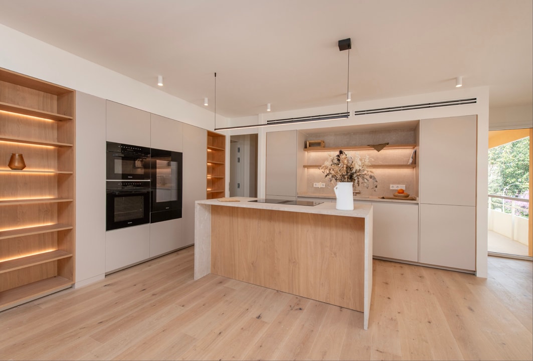 The architectural and interior design firm that worked on the project has created a warm and comfortable home, with the latest technology, including underfloor heating and air conditioning in all rooms. The apartment comes with a parking space, which is a big plus in this area.