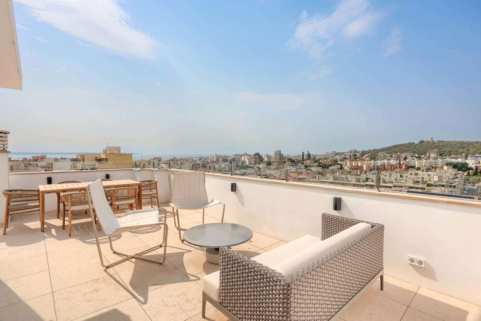 The highlight of this home is the private roof terrace with 360-degree views of the Mediterranean Sea, Palma Cathedral, Bellver Castle and the Tramuntana Mountains. There is space for both relaxation and social events - with a lounge area, dining area, outdoor shower and guest toilet. The terrace is prepared with installations for an outdoor kitchen.