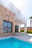 The standard villa has a total of 108 built-up square meters on one floor. There is a modern open plan between the kitchen, dining room and living room, three spacious bedrooms with fitted wardrobes and two bathrooms, one of which is en-suite with the master bedroom. From the living room and the master bedroom there is direct access to the terrace at the front and further out to the private pool, while from the other two bedrooms you have access to the garden at the back.