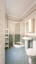 En la primera planta hay tres dormitorios grandes y un baño familiar. El dormitorio orientado al sur tiene terraza y vistas al barrio encantador.