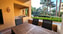 La terraza privada cubierta tiene vistas a los exuberantes jardines tropicales y a la tranquila piscina estilo laguna, creando el entorno perfecto para relajarse.