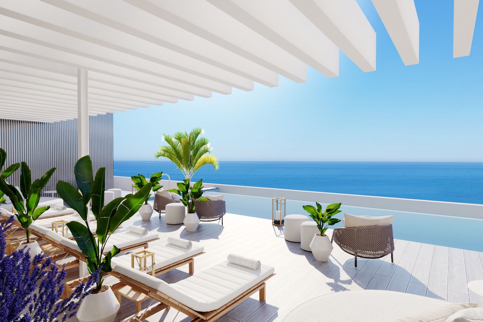 Hay apartamentos de uno a cuatro dormitorios, todos con amplias terrazas donde puedes disfrutar de cenas con tus seres queridos, cada apartamento ha sido cuidadosamente creado para maximizar las vistas al mar.