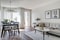 Sällskapsrummet ligger som en central punkt i bostaden med utgång till balkongen. Den trivsamma umgängesytan utnyttjas optimalt och här ges utrymme för både soffgrupp och matsalsbord. Släta vita väggar samsas med stort fönsterparti som går över vinkel, och utgång till balkongen. Här är det ingen byggnad på nära håll framför vilket gör rummet mycket ljust, oavsett årstid. Perfekt för fest eller vardag.