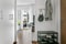 Entréhall med klinkergolv och vita väggar. Hatthylla och garderober.