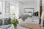 Rummet har plats för säng, soffhörna och matplats. Det är parkettgolv och vitmålade väggar. Härifrån är det utgång till uteplats med västerläge.