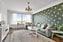 Mysigt vardagsrum med utrymme för större möblemang. På golvet ligger laminat och väggarna är ljusmålade med en fondvägg.