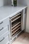Mycket fint renoverat kök med inredning som har luckor i grå nyans och spotlights under överskåp. Bänkskiva av komposit. Maskinellt utrustat med induktionshäll, inbyggd ugn, vinkyl, integrerad diskmaskin samt hel kyl och frys. Köket har ljusa väggar väggar och vitlaserat parkettgolv.