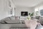 Rymligt vardagsrum med ett valv och dörr till en av uteplatserna ut mot baksidan av trädgården. "Eldstaden" som syns i vardagsrummet är inte monterad för stadigvarande bruk utan anses som möbel och kommer därav inte att följa med i köpet.