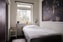 Rofyllt och insynsskyddat sovrum med vita väggar och plastmatta i mörkare ton. Här bjuds det på naturskön utsikt från det funktionella fönstret med vädringssektion och plats för byrå samt större säng.