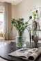 Med sitt gavelläge på översta våningsplanet bor du här i den lugnaste delen av huset - utan insyn från grannar. Lägenheten bjuder på ett generöst ljusinsläpp tack vare fönster i tre väderstreck och det höga läget ger en befriande utsikt som sträcker sig över tegelhusets taknock mitt emot och bort mot den ständigt färgskiftande himlen.