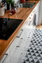 När du kommer in i hallen har du till vänster ett smakfullt välutrustat kök med öppen planlösning mot vardagsrummet.