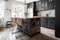 Bra arbetsyta erbjuds i köket och maskinerna håller god kvalitet. Dessa består av kyl, frys, induktionshäll, varmluftsugn, mekanisk fläkt, integrerad mikrovågsugn och diskmaskin. Köket får ett härligt ljusflöde från två stora fönsterpartier och här når vi även bostadens fina balkong. I köket erbjuds matplats för minst sex personer. På golvet ligger ett golv i kakel och väggarna är vita.