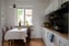 Det stora köket är en praktisk och estetiskt tilltalande del av bostaden. Med fönster åt två håll fylls utrymmet med dagsljus och skapar en ljus och inbjudande atmosfär. Här finns all maskinell utrustning du behöver för en modern livsstil, och den generösa förvaringsytan möjliggör en organiserad och funktionell köksmiljö. Dessutom finns en bekväm matplats som rymmer minst fyra personer, perfekt för måltider och trevliga samtal.