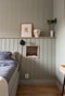 Direkt till vänster har vi lägenhetens sovrum med plats för dubbelsäng och skrivbord om man jobbar hemifrån.