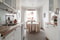 Ljust kök med gott om förvaring i flertalet skåp. Köksluckorna är vita och ovanför bänkskivan i ek sitter vitt kakel. Det finns gott om plats för matbord invid det stora fönstret. Utrustning består av spis med ugn, fläkt, mikrovågsugn samt kyl och frys.